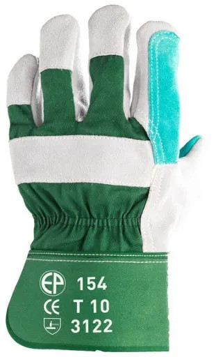 • zöld marhahasíték megerősítés a mutató- és hüvelykujjon, valamint a tenyéren