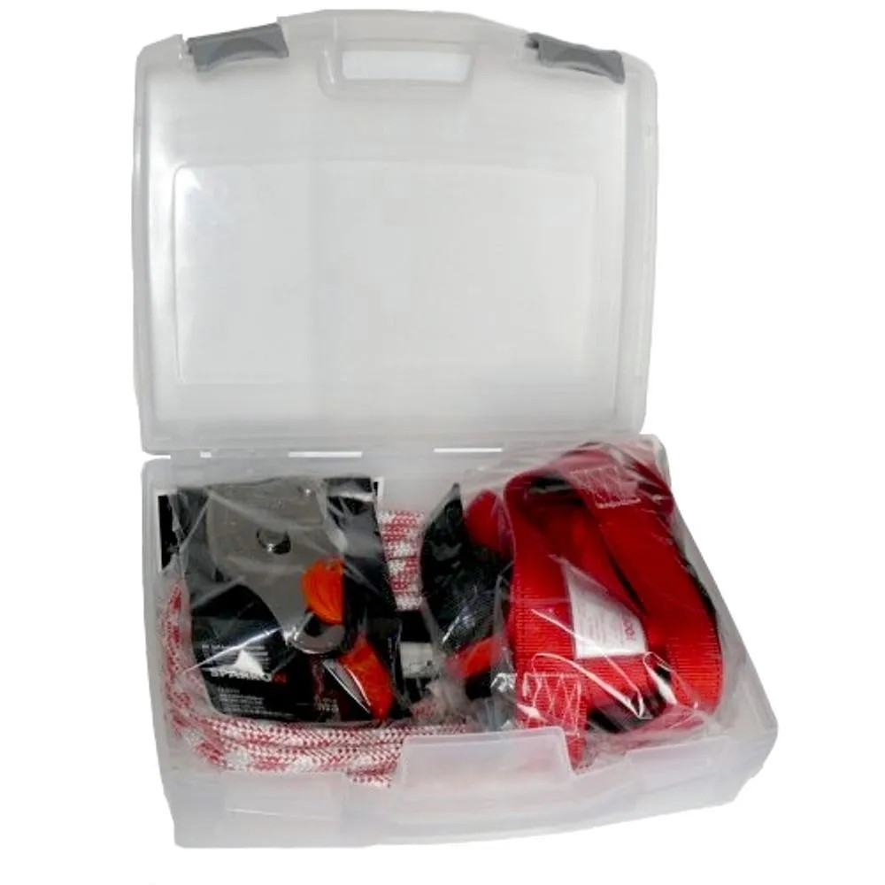 • Sparrow mentőkészülék, 10 m statikus kötél, teljes testhevederzet, műanyag tartódoboz