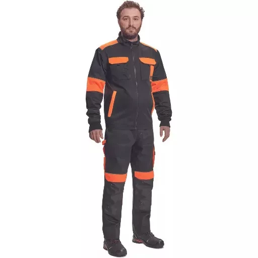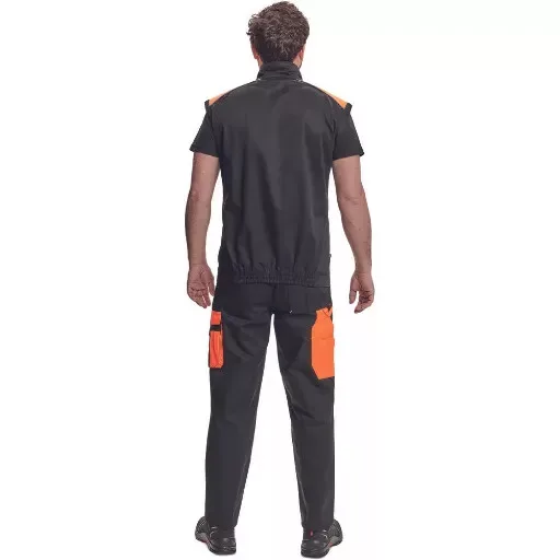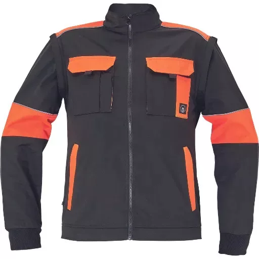 • férfi cipzáras munkakabát levehető ujjakkal; 2 első zseb, 2 mellzseb; Oxford 600D erősítés a váll és könyök részeken; rugalmas mandzsetta és alsó derékszegély; fényvisszavető szegés