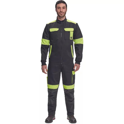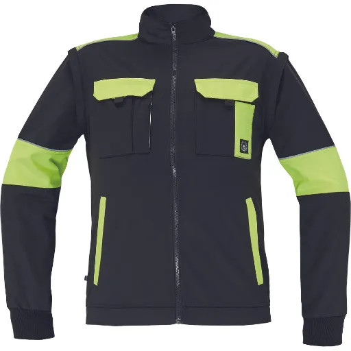 • férfi cipzáras munkakabát levehető ujjakkal; 2 első zseb, 2 mellzseb; Oxford 600D erősítés a váll és könyök részeken; rugalmas mandzsetta és alsó derékszegély; fényvisszavető szegés